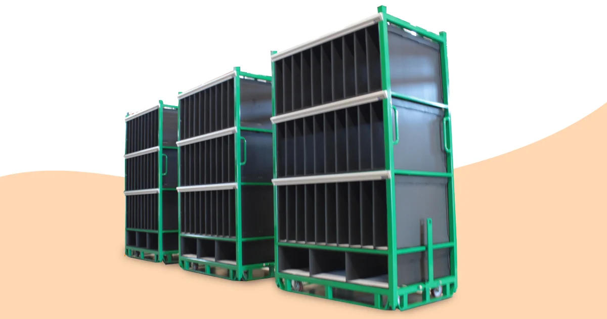 Grâce à des conceptions sur mesure, nous veillons à ce qu'un maximum de pièces puissent être transportées par emballage en parfait état, ce qui permet de réduire l'empreinte carbone, car moins de camions sont nécessaires pour le transport, en plus de réduire les coûts.