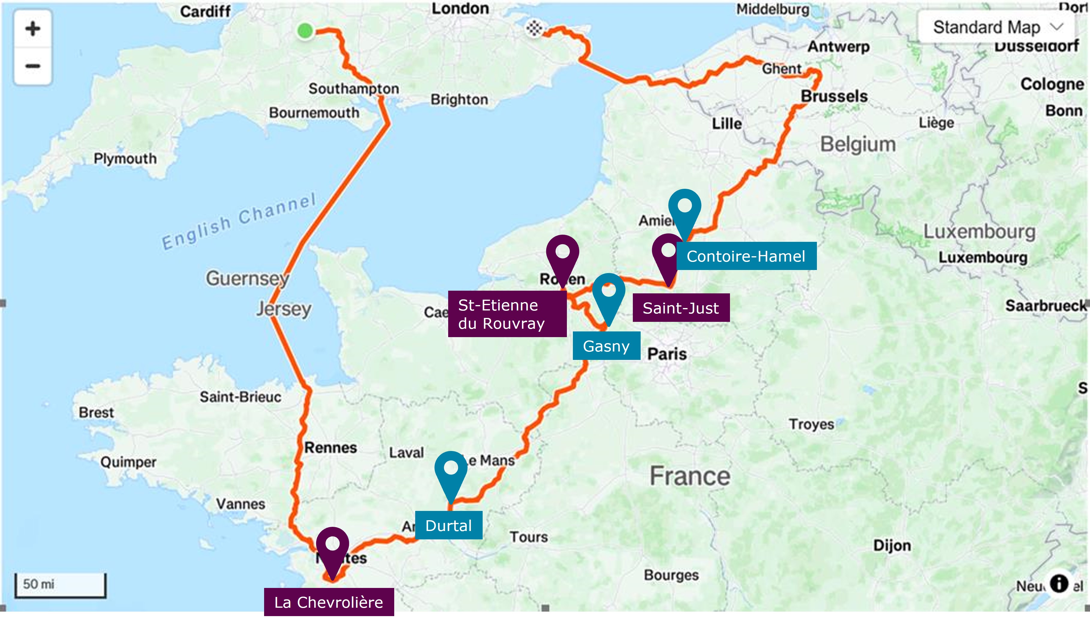 Tout au long de leur parcours, les cyclistes ont été chaleureusement accueillis par les équipes des sites DS Smith, notamment en France : La Chevrolière, Durtal, Gasny, Rouen, Saint-Just et Contoire-Hamel. Ces étapes ont été l’occasion de moments de partage, de sensibilisation et de solidarité.