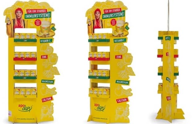 Les présentoirs en carton ondulé pour les PLV sont largement utilisés dans les magasins et la grande distribution.