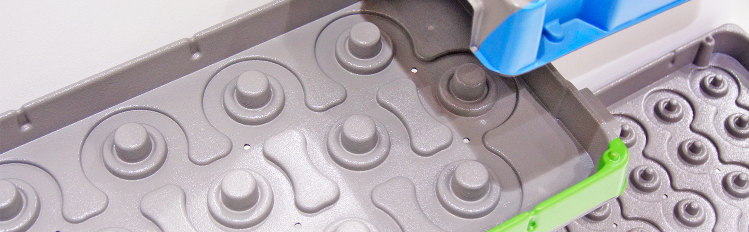 Bandejas termoconformadas y bandejas moldeadas fabricadas en EPP, diseñadas a medida de las piezas a transportar para que tengan un perfecto alojamiento que evite roturas, ralladuras y movimientos innecesarios a lo largo de la cadena de suministro.
