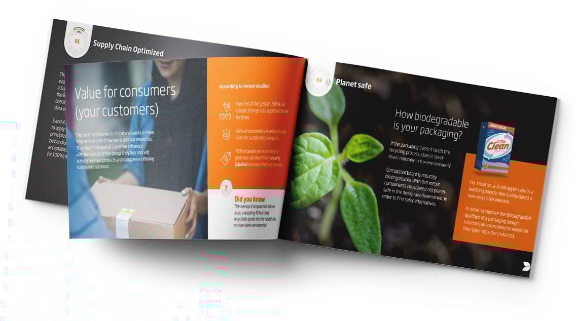Ez az úttörő eszköz lehetővé teszi számunkra, hogy 8 különböző mutató mentén felmérjük és összehasonlítsuk, mennyire illeszkednek az egyes csomagolási konstrukciók a körforgásos gazdaságba. A Circular Design Metrics – az iparágban elsőként – egyértelműen azonosítja a csomagolásdesign fenntarthatósági vonatkozású teljesítményét, ahogy azt is, hova kell figyelmünket összpontosítani.