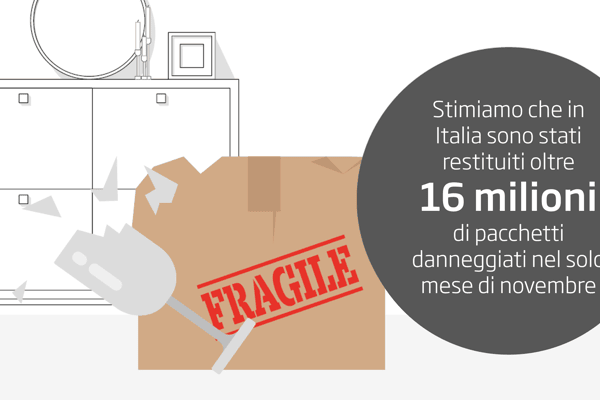 • DS Smith stima che in Italia sono stati restituiti oltre 16 milioni di pacchetti danneggiati nel solo mese di novembre