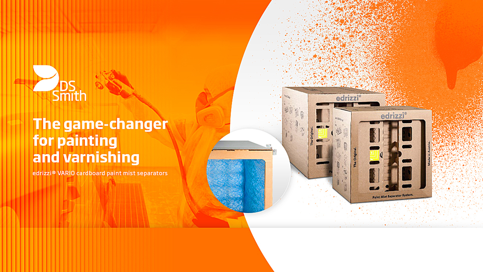 For over 20 years, the fibre-based edrizzi® system has been supporting international paint shops in environmentally friendly, economical and ergonomic surface finishing. DS Smith is the leading manufacturer of packaging and also the ideal partner for complex industrial solutions. brainflash GmbH from Austria specialises in innovative and sustainable solutions for the paint industry. DS Smith developed the optimal manufacturing process for its patented edrizzi® Vario paint mist separator: cardboard boxes with a complex interior that revolutionised the paint industry back in 2003.