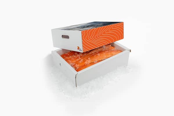 Fiskekassen DryPack er tilgjengelig i tre standardstørrelser med hvit eller brun inn- og utside, alle tilpasset paller for enklere transport.