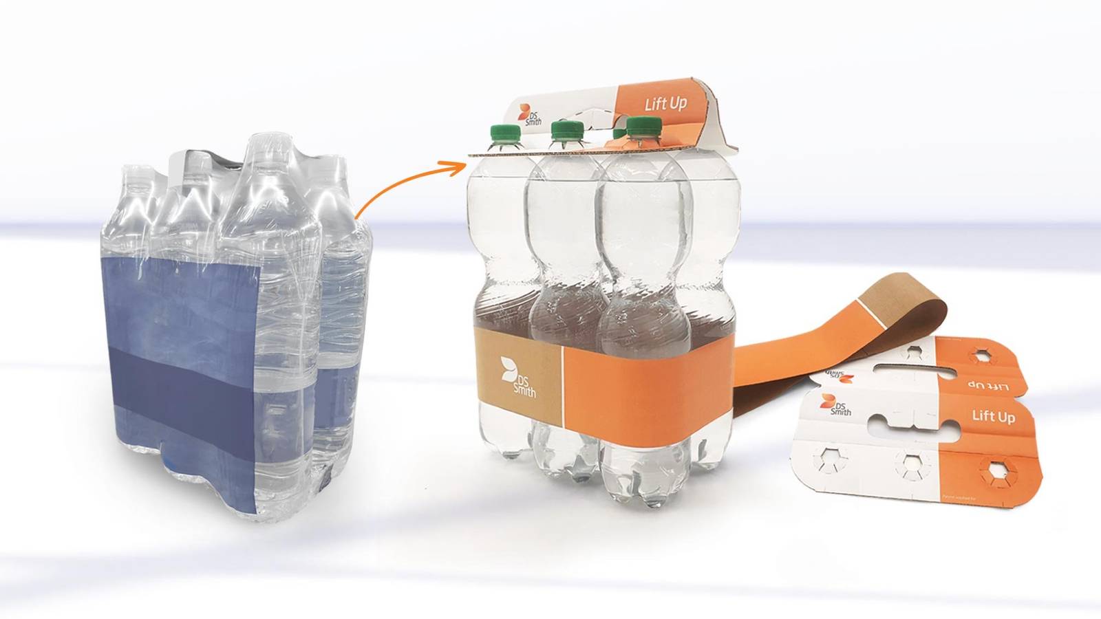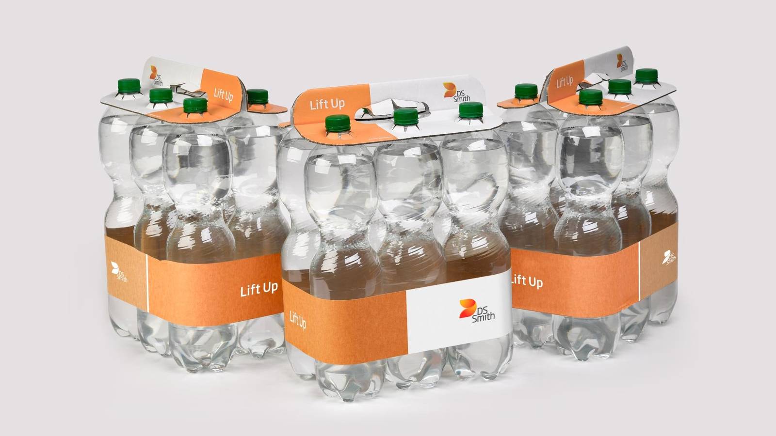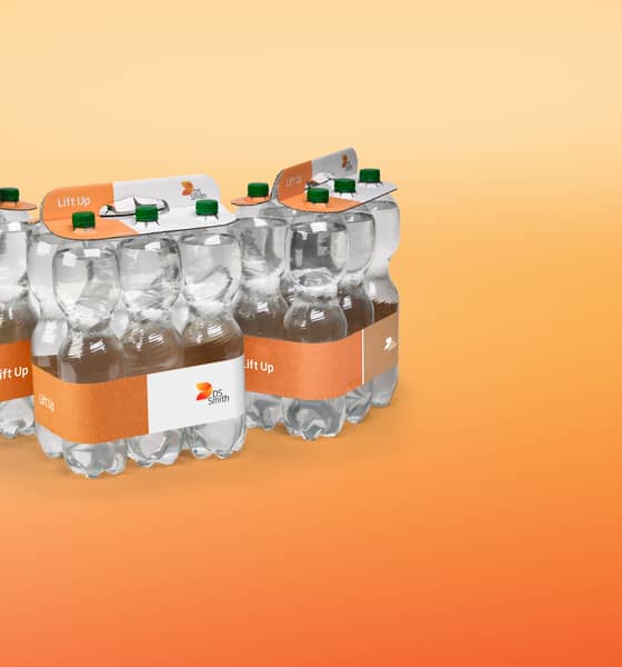 By using a clip made from fibre based recyclable materials, our product contributes to the circular economy and this gives clear and demonstrable benefits: A third party validated Life Cycle analysis on a standard 6x1,5l pack, shows that by changing to DS Smith Lift Up, we not only remove plastic but also significantly reduce CO₂e emissions by *42% (compared to a shrink wrap alternative). In addition to that, the manufacturing process also achieves a 58% reduction in machine energy consumption further enhancing its environmental benefits. Moreover, our bundled packs require no tertiary packaging, eliminating unnecessary waste.