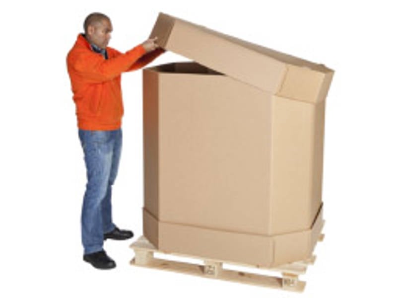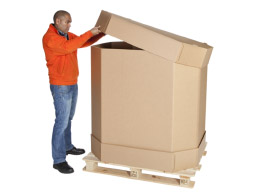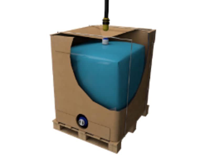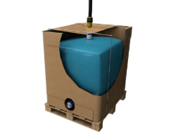 Uma embalagem OneWay em cartão canelado com certificação ISTA 3H, desenvolvida para líquidos a granel de 1000 litros. Uma mudança eco-eficiente para as embalagens industriais.