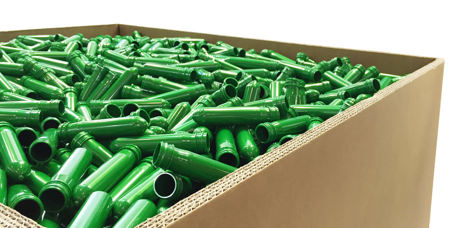 Graças à utilização dos cantos das embalagens de design quadrangular, obtém um aumento de 3 % no número de moldes ou granéis por embalagem.