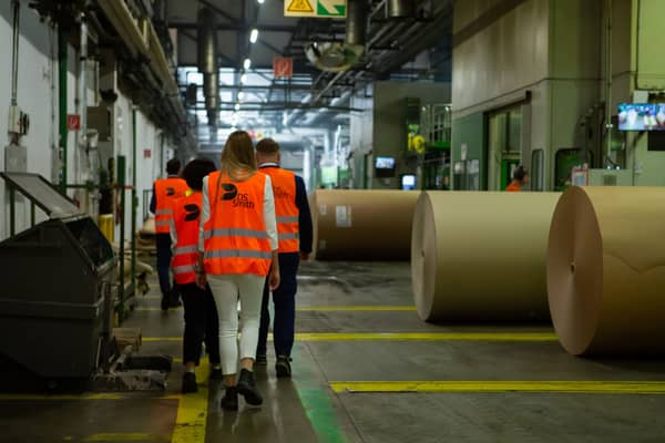 Vladimír Bojnický, vedúci závodu v Martine, sprevádzal veľvyslanca Bakera závodom a poskytol mu pohľad zblízka na komplexný proces výroby obalov z vlnitej lepenky.
