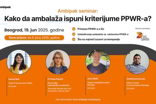 Kao lider u inovativnim i održivim ambalažnim rešenjima, DS Smith je sa ponosom učestvovao na nedavnom seminaru “Kako da ambalaža ispuni kriterijume PPWR-a”, koji je organizovala Ambipak Srbija. Ovaj informativni događaj bio je posvećen razmeni strategija za usklađivanje ambalaže sa Regulativom o ambalaži i ambalažnom otpadu (PPWR) na nivou celog regiona.