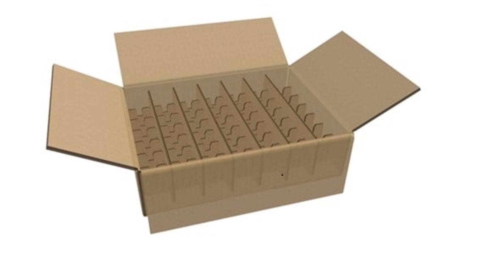Our designers created a 100% recyclable corrugated box and dividers that are robust enough to be stacked without suffering any shock. The incorporated corrugated pallet has the added advantage of being a single unit for easier handling and storage.